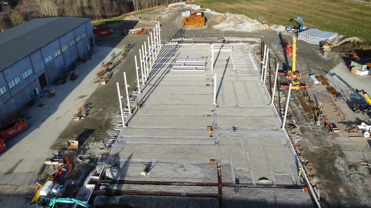 I den nya fabriksbyggnaden i Ucklum – på totalt 4 500 kvadratmeter golvyta – planeras för tillverkning av plattbärlag. Hallen ska stå färdig i mars 2023 och sedan kompletteras med el, dörrar, fönster och VVS för att i nästa steg ta emot den omfattande produktionsutrustningen. Installationen av utrusningen beräknas pågå mellan maj och mitten av oktober då anläggningen ska kunna tas i drift.