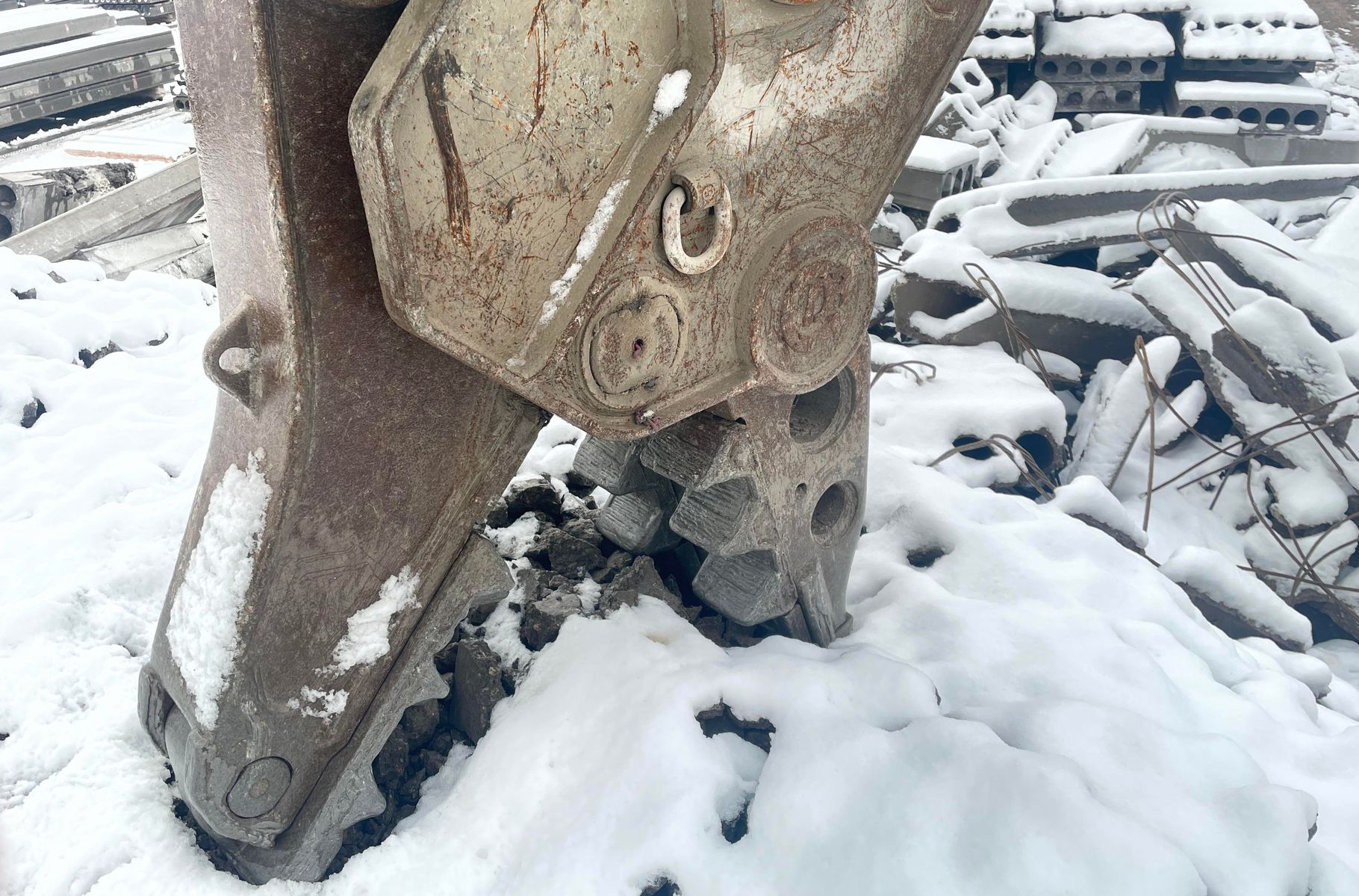 – Vi har en maskin på plats som först grovkrossar det överblivna materialet och sorterar ut armering och betong. Sedan krossas det ned i mindre fraktioner som man kan använda vid gjutning, säger Johan Seljeson.