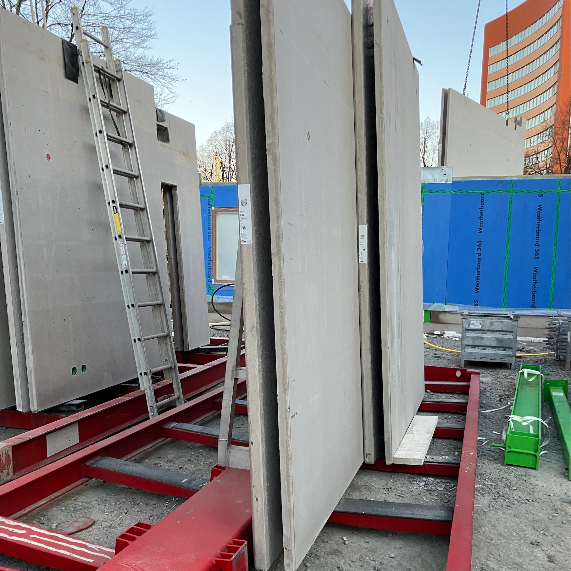 Utöver plattbärlag levererar Byggelement även skalväggar, balkonger och RD-plattor, alltså massiva bjälklag, i två olika tjocklekar, samtliga i ECO 30 – allt för att minska koldioxidavtrycket så mycket som möjligt.