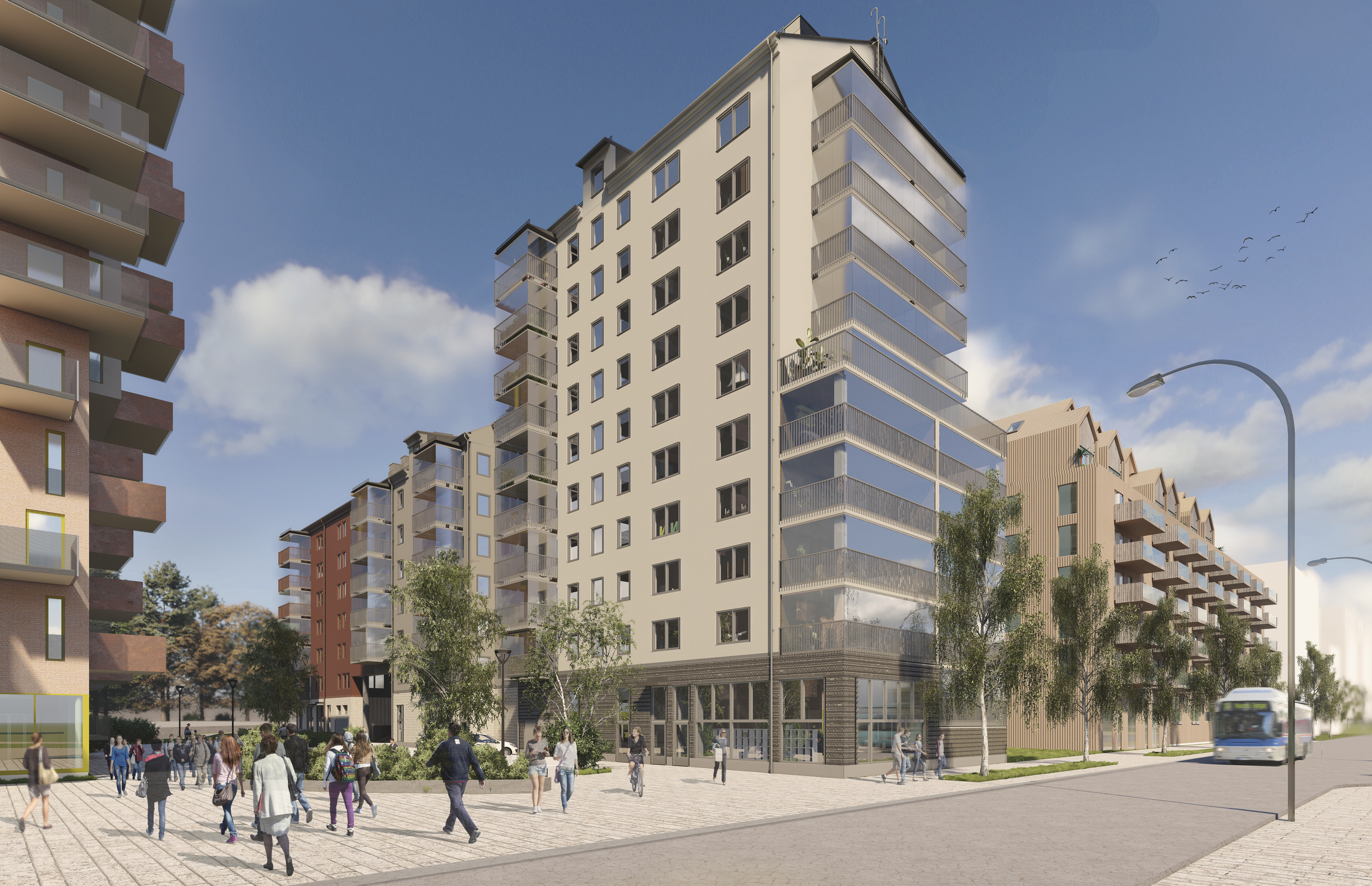 Projektet på Öster Mälarstrand är ett samarbete med Peab som bygger de sex–tio våningar höga husen i kvarteret Förseglet på uppdrag av Bostads AB Mimer.