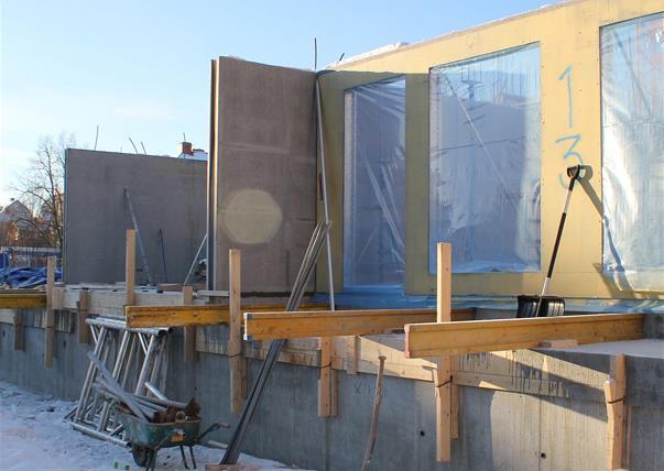 Joacim Andersson berättar att Skandinaviska Byggelement även levererar balkonger och pelare som tillverkas i våra andra fabriker i Kalmar respektive Hallsberg. Projektet flyter på bra och planerad inflyttning är tidig höst 2017.