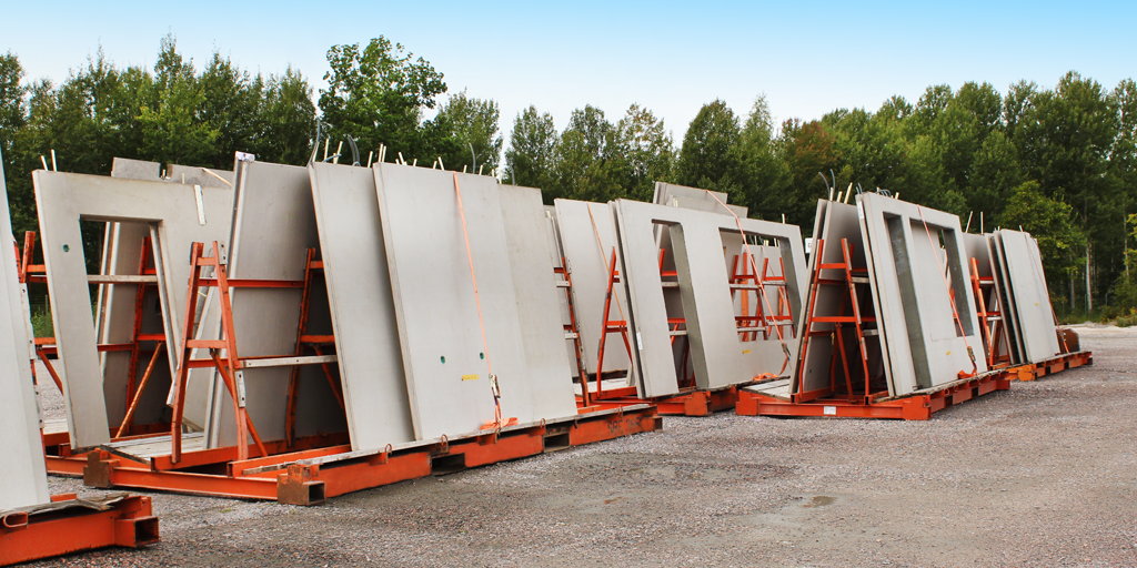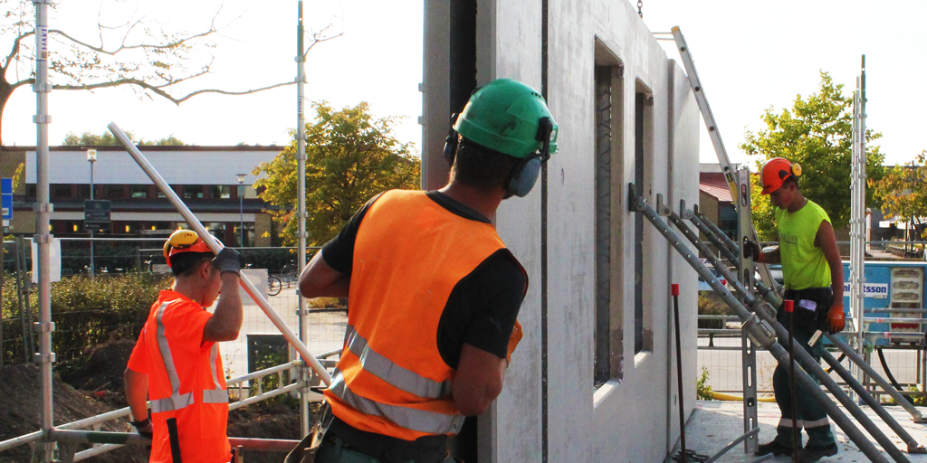 Väggarna levereras direkt till byggarbetsplatsen och monteras med kran.
