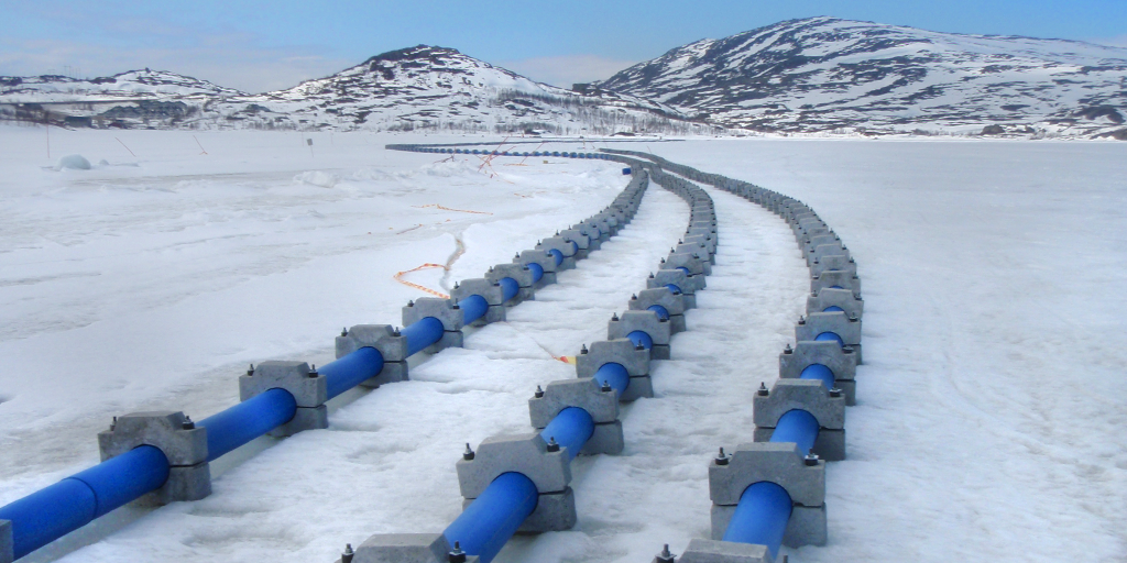 Utläggning av ledningar sker oftast direkt på vattenytan men det förekommer även utläggning av ledningar även på is under vintertid.