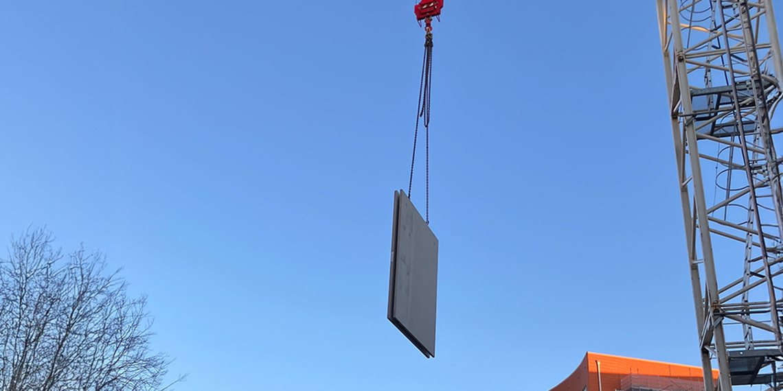 Förutom plattbärlag ingår även skalväggar, balkonger och RD-plattor – massiva bjälklag i två olika tjocklekar – samtliga i ECO 30. Ett projekt som bidrar till en mer hållbar stadsutveckling och 38 nya hyreslägenheter.